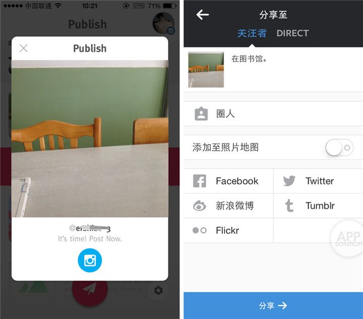 有一点需要注意的是,Publish 的原理是在指定时间提醒用户发送内容,本身并不会将图片自动发送至 Instagram,所以用户必须手动跳转至 Instagram,然后才能发送。这一点看起来可能略微鸡肋,然而 Publish 还是相当实用的,在 Publish 编辑好的内容,当跳转至 Instagram 内就无需再次编辑,发送效率很高。
