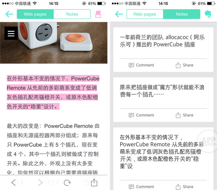 你在网页中标记的文本,都会显示在 Notes 页面里。对于每一段文本,还能进行评论(注释)和分享。值得一说的是,使用 Liner 分享的出去的链接,并不是原网页,而是被高亮标记的新网页,听起来是不是很赞?