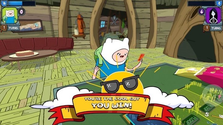 Card Wars 采用平面绘制的卡牌+立体的卡通人物建模,呆萌的角色皆取材于原版动画。而游戏的原声配乐也是一样的欢乐,复古芯片乐与普通乐器的混音相当个性。