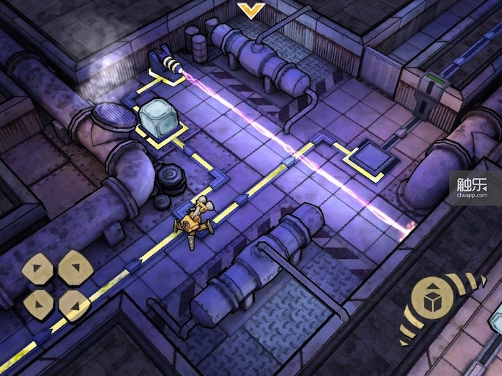 游戏中,Clarc 要利用各处的箱子等机关来挡住致命的激光以及敌人的追击,许多地方都考验玩家的观察力,以及对于时间的把控力。但游戏玩法还是有些单调,你甚至可以认为它就是一款 3D 版的推箱子游戏。
