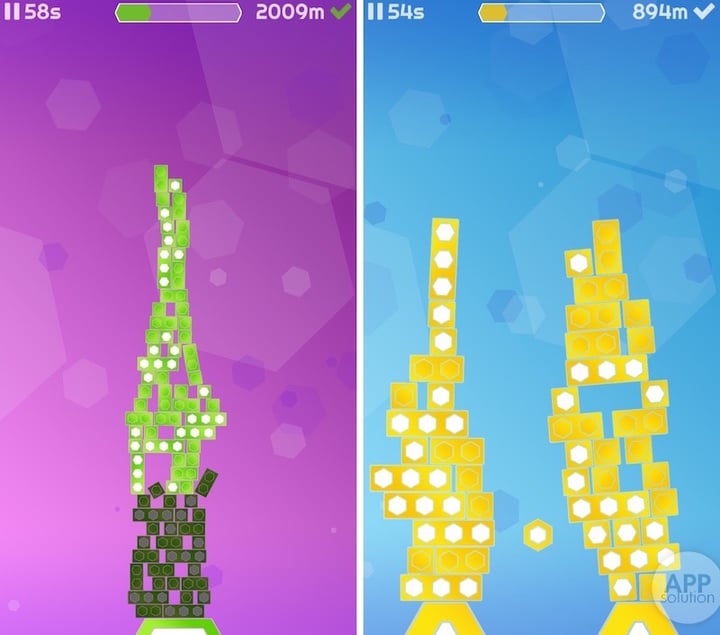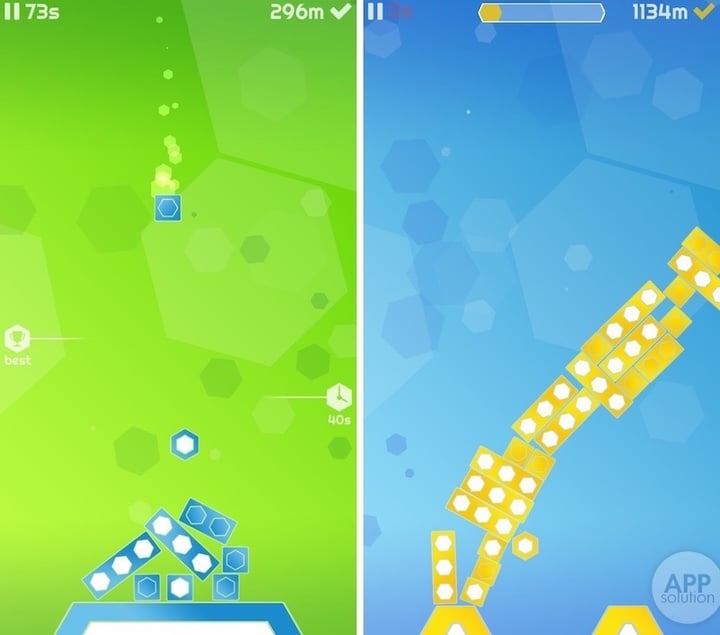 与俄罗斯方块、Shades 等堆叠游戏不同,Stack Heroes 中的物块不是逐格,而是可以连续移动。玩家可以左右自由移动物块,搭建巨型的堆叠。