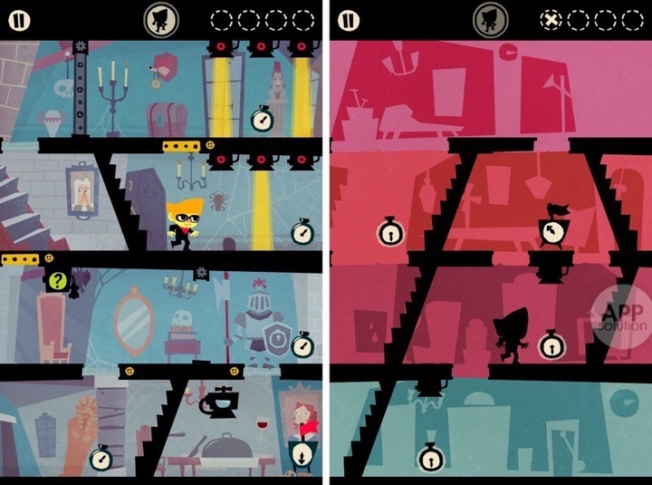 除了要避免保安的巡逻,灯光的照射,你还要踩准音乐的节奏来一步步保持移动,否则不仅会抽搐不已,还会破坏掉面前的时钟。在成功尝试跑酷类游戏之后,Simogo 这一次也抓住了关卡冒险类游戏的精髓。非同寻常的画面设计与富有创意的操作方式使媒体的褒奖再次纷至沓来,而 Beat Sneak Bandit 的销量在新年来临之前便已突破十万大关。