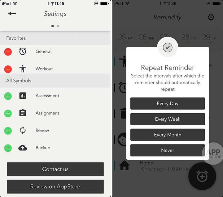 操作简单不代表功能简陋。Remindify 自带的图标数量超过 200,足以覆盖一般用户的生活场景。添加之后的提醒事项也可以进行调整和补充,比如修改时间、增加注释或是设置重复提醒等。