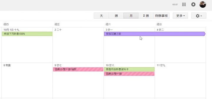然后我们也会开始把像是朋友要到家里玩、要一起去拜访亲友、要一起去做某一件事情的行程,在想到的时候就写到这个共用行事历上。这样我们就能彼此记住这件重要的夫妻共同活动,不会有任何一个人忘记,两个人都能彼此提醒对方要准备的事项,也不会有人不小心在那一天规划了其他的事情。