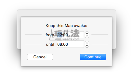 来到重点了,AMH 比 Caffeine 等一票同行的最大特色就是能自定义 Mac 防休眠的时段(选择菜单里的「According to the Schedule」)以及自定义时长(小时、分钟、秒)(菜单里选择 Custom amount of time),以下是这两项功能的设置菜单: