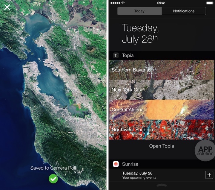Topia 的用户界面很简单,且没有复杂的手势。加载完的卫星图片会以屏幕等高的比例展现,你可以左右滑动图片,选择满意的画面保存。