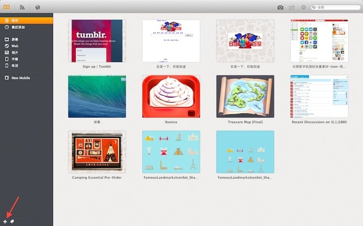 - 素材抓取能力超强,内置了强大的截屏工具,收集网站整体素材等功能,再配合浏览器插件,把喜爱的素材尽收囊中