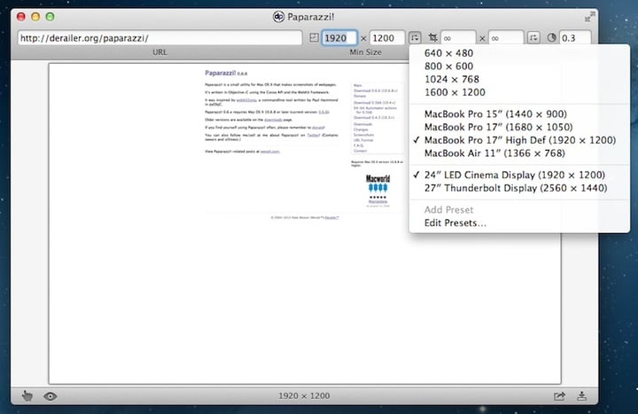 Paparazzi! 是一款小巧的网页截图工具,输入网址就会得到整个网页的截图,这种方式我感觉比腾讯的 Snip 还要方便,点击底部右下角的下载按钮就可以把截图保存到本地。