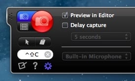 Snagit 会在主屏右侧放置一个固定的操作窗口,截图与录屏可以随意切换,点击红色按钮开始操作,细心的话你会在这个悬浮框里发现 Snagit 是具备预览,扑捉延时,内置麦克选择功能的。