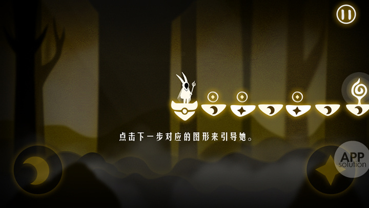追光者画风清奇,一举跃上我的心头温柔之地,只因故事里的她做了个噩梦,我们需要温柔的以星月为引,带她走出梦魇。点击屏幕左下方或右下方与下一步基石对应图案的按钮,即可前进。