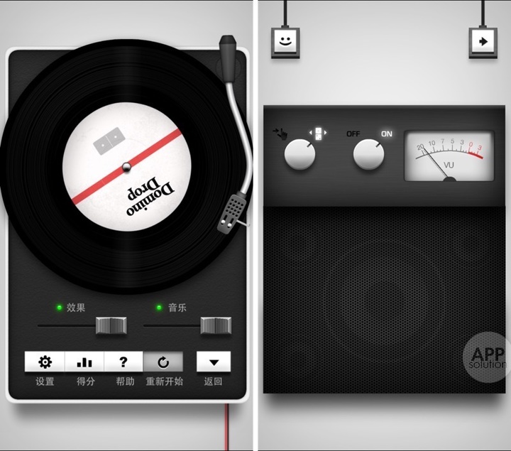 Domino Drop 最吸引我的,莫过于细致入微的拟物化。从盖上木盒的灰尘,再到随音乐偏转的功放电平表,还有舒缓的爵士配乐和清脆的骨牌碰撞声,处处都体现着开发者的细心。
