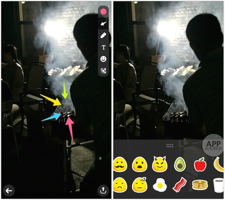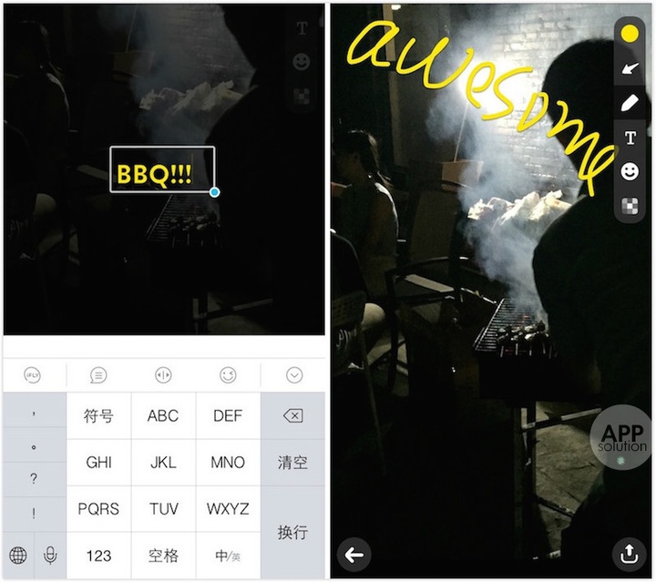 功能方面,五种颜色与剪头线条文字马赛克的配置相信足以满足绝大多数人的需求,而自带的贴图也令人眼前一亮,其中土豆脸的表情可谓正中我的萌点。滑动改变选项框的位置与便捷的删除功能也使得整个应用更显人性化。