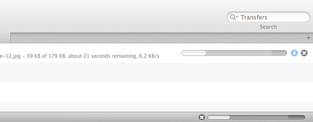 Transmit 中的进度条被设计为双重形态,浅色表示当前任务进度,而深色表示总任务进度。