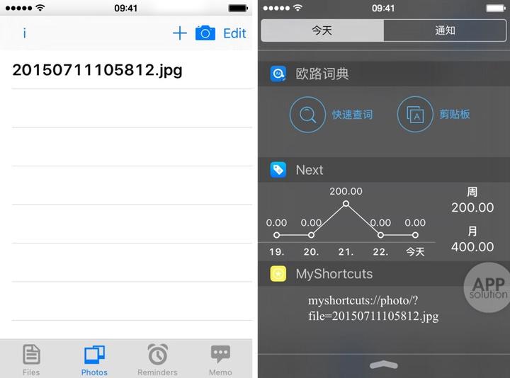 MyShortcuts+Viewer 可以将文件存储在自身应用中,然后通过相应的 URL Sche me 在类似 Launch Center Pro 的应用中快速打开。另外其还支持在 Today Widget 中显示和打开相应文件。最后顺便提一下 MyShortcuts+Viewer 有一个 Bug,就是有一个 URL Scheme 会使得其自身闪退(myshortcuts://?home),不过对应用本身没有什么伤害。