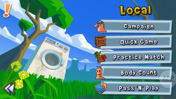 此外,Worms 3 提供一种 Pass 「N」 Play 模式,让几位玩家可以传递一台手机来完成对战,最多支持四位玩家一起。