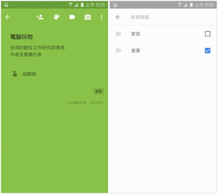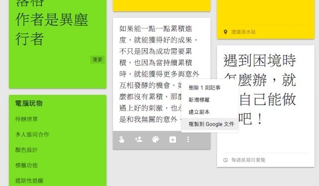 声明:「领客专栏」所有文章均由原作者授权 AppSolution 发布/转载,任何个人/组织未经授权不得使用。本文转载自「電腦玩物」,原文链接:Google Keep 筆記任務更強的活用 10 招技巧心法教學