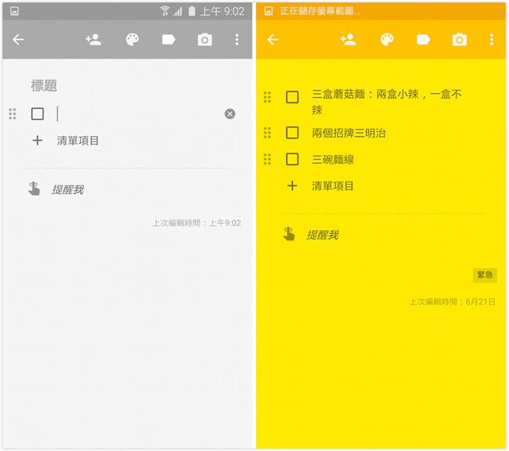 但有时候需要一些更细致的分类过滤时,我才会辅助使用 Google Keep 上的「标签」功能,例如帮某些笔记加上「紧急」的标签,每天记得过滤看一下有哪些紧急的笔记,以防自己忘记重要的事情。