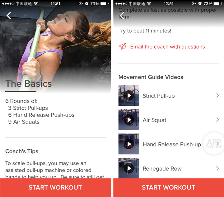 每一个健身项目的页面,列举了该项目的详细信息以及所需器材。如果你往下拉,还能看到教练给的小贴士。这款应用最大的亮点是缩短了用户与健身教练的距离。如果有任何疑问,你可以给教练发送邮件。