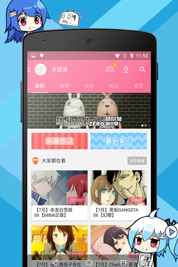 第 218 期豌豆荚设计奖,我们选择的是哔(bì)哩哔哩。在Android 4.0 时代,哔哩哔哩就是 Holo 设计的优秀典范,而在不久之前更新的 4.1 版本,哔哩哔哩带来了他们的 Material Design 设计。