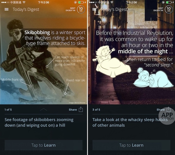 Daily Curiosity 每天只在凌晨放出五条事实信息,虽然数目精简但范围也涵盖了历史科学自然生活等各个方面,并且都是由编辑从万千条目中手动挑选出来的,质量值得肯定。