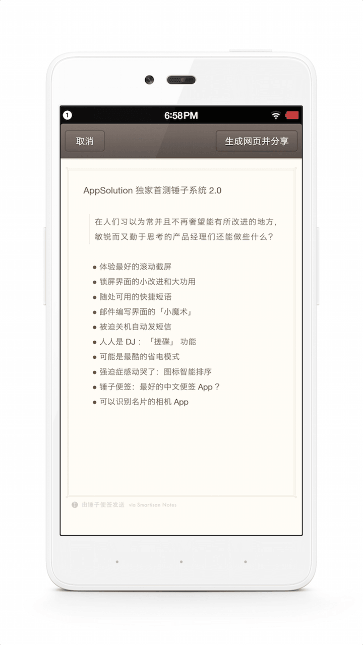 锤子旗下最出名的 App 锤子便签也迎来了更新。分享便签的途径新增了「网页分享」,并加入了 Markdown 标记语言支持。