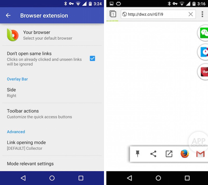 也许你在 Flynx、Javelin 和 Link Bubble 这三款「气泡浏览器」中犹豫了很久,但在 Pintasking 中,你不需要任何纠结和担心,他会将你曾经用得最顺手的那个浏览器,在关键时刻改造成浮动按钮的样式。