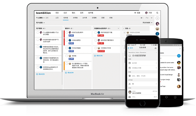 Teambition 适用于 iOS 7.0+ 的 iPhone 及 Android 4.0+ 设备,iOS 版 46.4 MB,Android 版 9 MB,免费,可付费升级企业版。另还提供 Web、Mac 和 Windows 客户端。