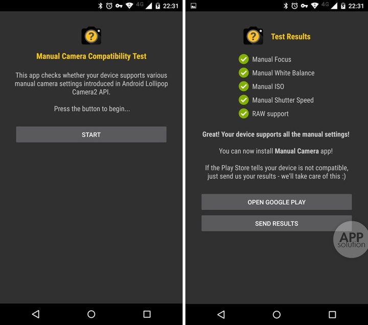 如果你现在已经心动了,先别急,有可能你的手机并不兼容这款软件!有鉴于部分「中枪用户」买了之后才发现软件并不兼容,开发者特地开发了一款兼容性测试软件。购买这款软件之前可以下载测试软件,来看看你的机器是否支持这款手动相机软件。