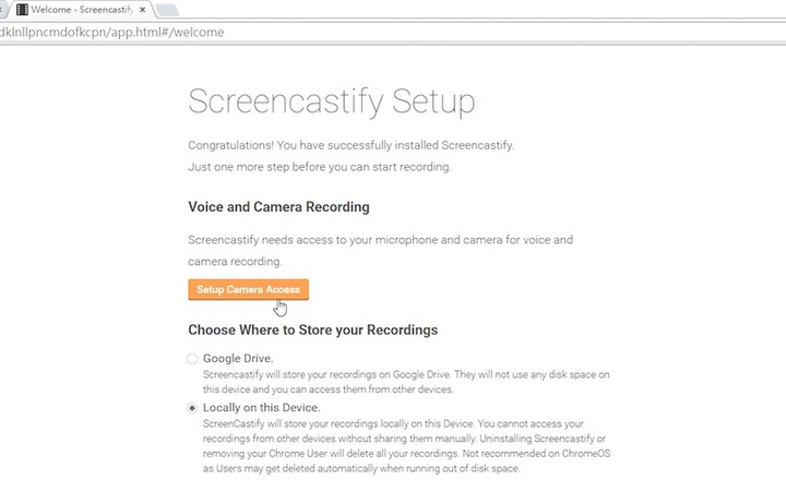顶多你需要使用 WebCam 前镜头,这时你可以在设定画面开启权限,或是你可以设定录制完成的影片都自动上传到 Google Drive 备份。