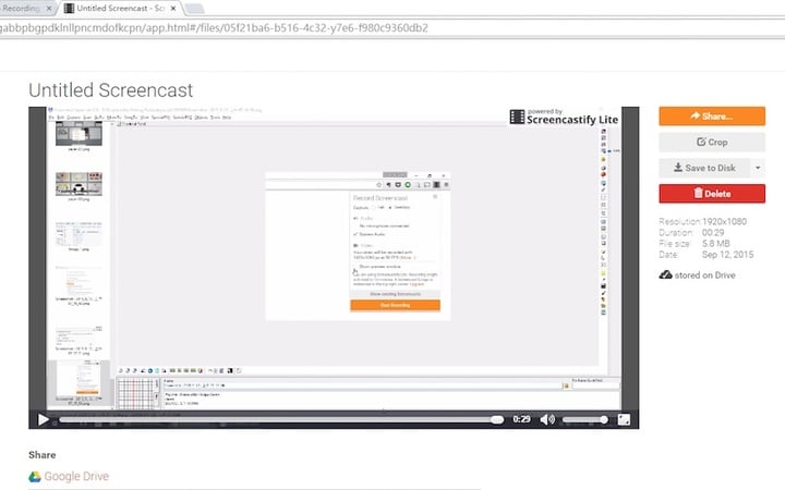 而当我们录制完成,按下结束按钮后,「Screencastify」会自动在 Google Chrome 中打开影片的预览分页,我可以在这里看到影片成果,决定要保留或删除。
