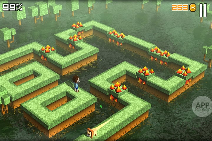 Cliffy Jump 很容易让我们联想到 Crossy Road(天天过马路)这款游戏,实际上主人公都是一枚可爱的像素块,都需要越过不同的障碍到达目的地,而你孜孜不倦的帮助主人公寻找回家的终点。随着复古的音乐,我们不孤独地踏上了跳回家的旅程。