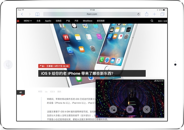 而在刚刚发布的最新版本中,「豌豆荚一览」更是火速支持了 iOS 9 在 iPad 上的 Slide Over、画中画、Spilt View 等重要特性,先看个视频来感受一下: