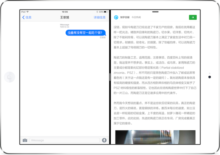 如果有人问你这个问题,偷笑之余别忘了和 TA 分享你的秘诀。在支持「分屏」功能的 iPad 上,你可以轻松实现一边聊天,一边浏览「豌豆荚一览」里 300 多个应用里的优质内容。