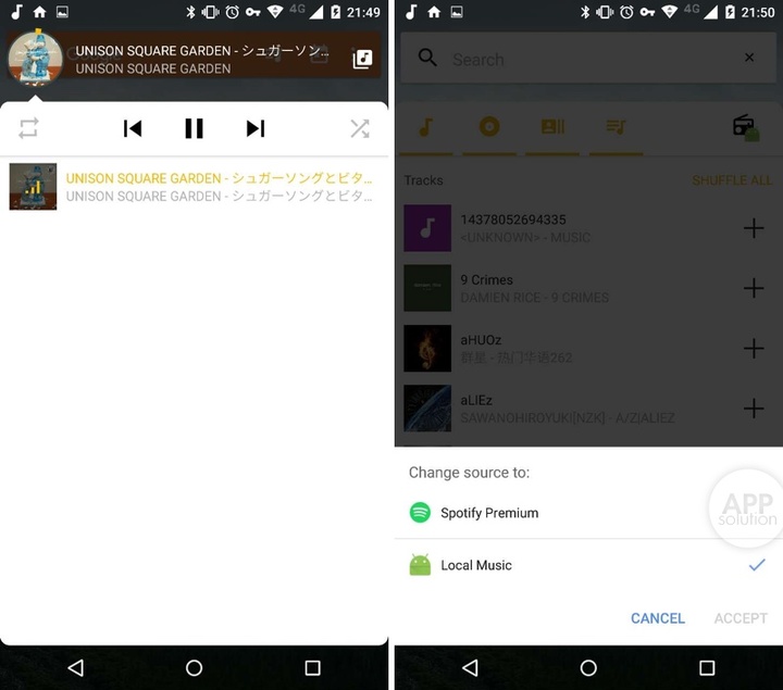 Android 上控制音乐播放器通常需要这么操作:下拉通知栏,然后选择暂停,或者换歌。有时候可能通知栏会被当前应用隐藏掉,你可能需要下滑两次才能见到音乐控制器;又或者你是个偏执狂,然后想指定听一首歌……