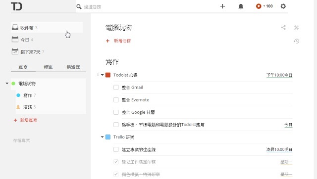 万用手帐里非常重要的任务功能,也可以使用专业的独立 GTD 服务来完成,如果以免费使用来推荐的首选,我会建议简洁的 Todoist,或是好看的 Wunderlist。