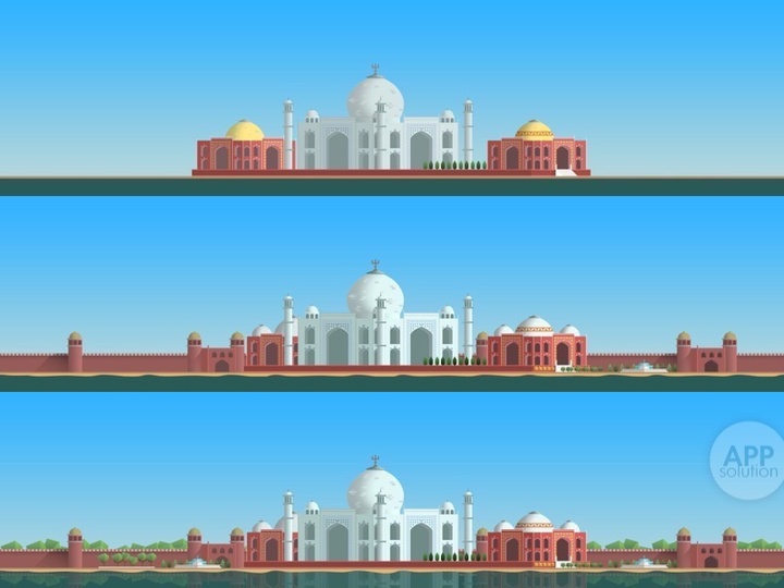 游戏中「低面建模」在关卡选择界面的应用恰到好处,凸显的透视效果与精心的光影布置,使得大地图在滑动中立体感强烈,而游戏对名胜古迹的地标刻画也同样简洁鲜明。
