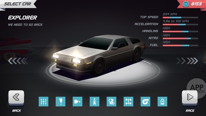 在游戏中,你会一眼认出「兰博基尼」和「布加迪威龙」这样的潮流跑车,虽然 Horizon Chase 并未取得车型授权,不过车型复刻得相当经典,例如图中出自《变形金刚》的「大黄蜂」,还有《回到未来》中博士的 DMC 座驾,有了经典车型的信仰加持,每场比赛总能取得好成绩。