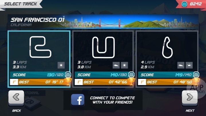没有签到奖励,没有坑钱内购,Horizon Chase 是一款实实在在的单机手游。游戏中收集的货币甚至无法用来购买赛车或升级零件,而只能解锁地图关卡。