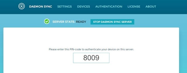 接着,在 Windows、Mac、Linux 上安装 Daemon sync 的电脑端软件(Server)。安装完成后启动电脑端软件,这时会用浏览器打开设定界面,你会看到中间有一个验证码。