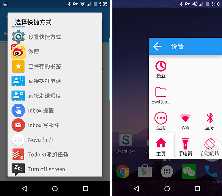 再或者,让它取代通知栏或桌面悬浮球,直接完成开关 WIFI、数据流量、蓝牙等常用系统操作。