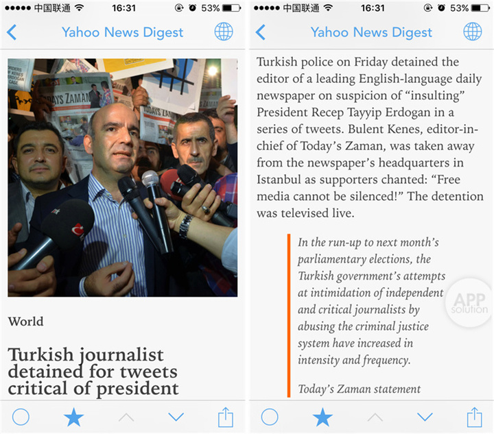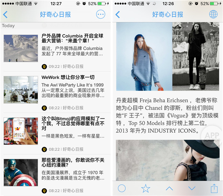 一款阅读器的好坏在于能否提供良好的阅读体验。这一点,Newsify 没让人失望。对于文章的排版、优化,Newsify 做的很棒。图文混排错落有致,标题会加粗,引用内容会用橙线标记,下方的功能按钮线条细腻、配色淡雅,完全不会影响阅读。