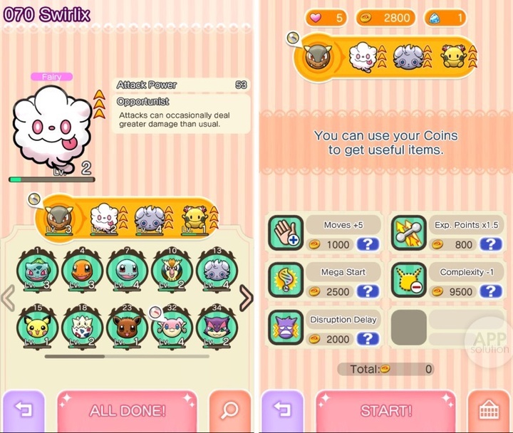 即使这款三消 RPG 卡通低龄向而且内购感人,但看到童年熟悉的身影,Pokémon Shuffle Mobile 依旧能让口袋迷们爱上它。