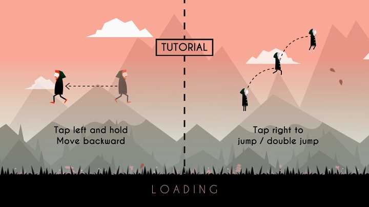 游戏操作相当简单明了,人物自动从左到右前进,玩家点击屏幕右方人物向上跳起,点击两次为二段跳,按住屏幕左方人物转身往屏幕左方前进。