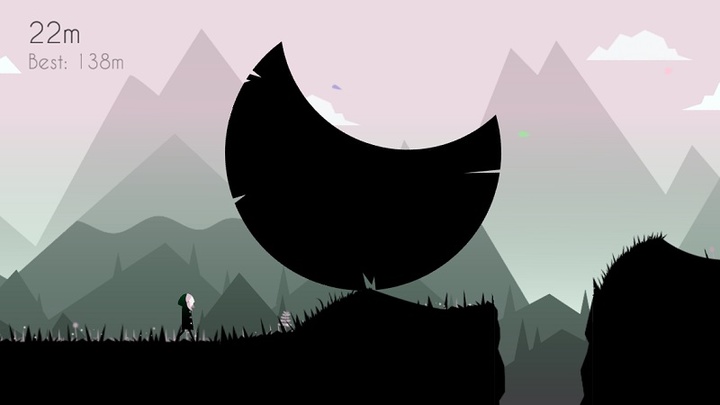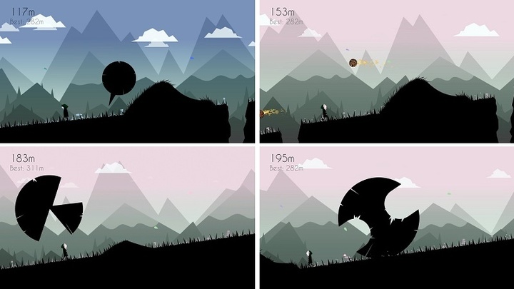 刚开始游戏时我误以为它是类似 Alto’s Adventure 那种小清新,谁知 10 秒过后发现它竟然是重口味。人物前进途中会有不同速度不同形状不同大小的石头火球滚过来阻拦,身体一旦碰到障碍物会被击碎,满屏飞溅的血雨更显悲壮。