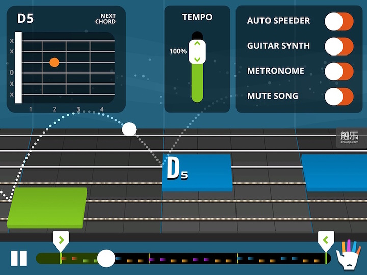 另外《Yousician Guitar》也有一个名为《Guitar Tuna》的配套应用,是一款简单、快速的吉他协调器,内置了节拍器和迷你和弦游戏,可以帮助吉他初学者快速调音和熟悉吉他。