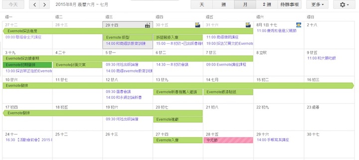 我的具体方法是在月日程表上画出项目进度图,然后就能知道每一周应该推进的进度区块,而这就成为我这一周应该努力的小目标。