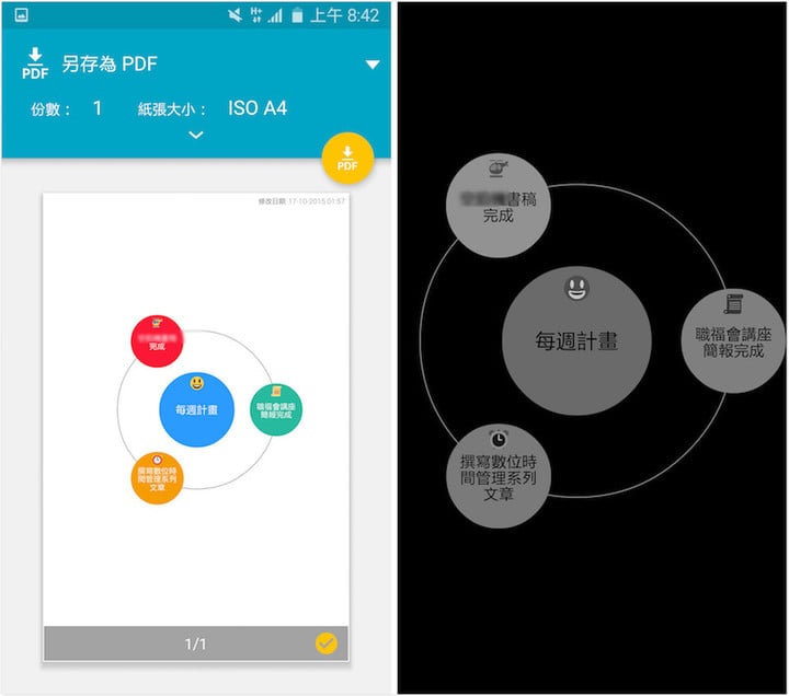 然后我在 Mindly 中选择「列印」成 PDF 档案,用 PDF App 打开图像,放大到我需要的部分,截图后,就能当作手机桌面桌布、锁定画面桌布来使用了。