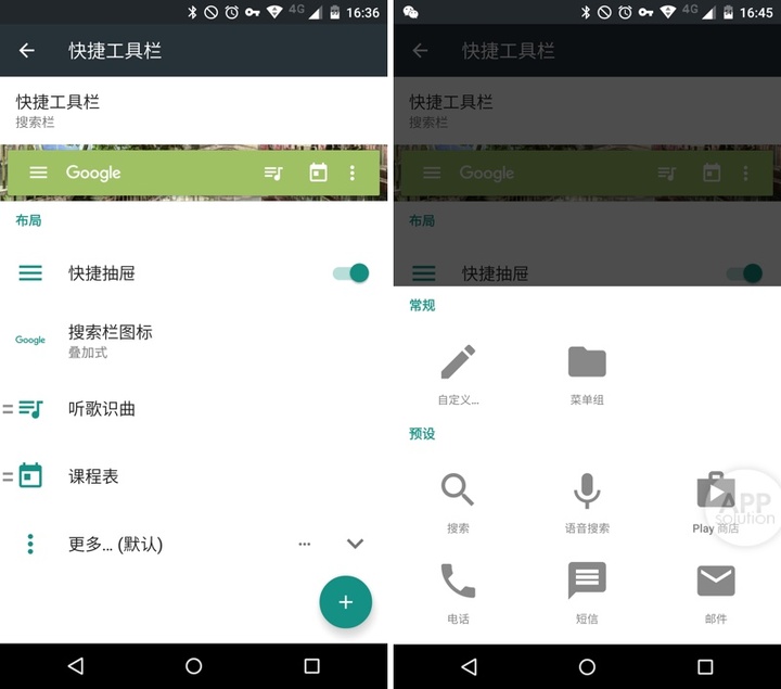 许多人还不知道,AL 的搜索框的功能按钮还能够自由调整为自己的常用功能。比如,我将网易云音乐的「听歌识曲」功能的快捷方式,以及我的上课课程表,替换掉原来的语音搜索按钮。这样,听到好听的歌,我就能快速开启识曲功能,也能够在第一时间看到我自己的课程表。