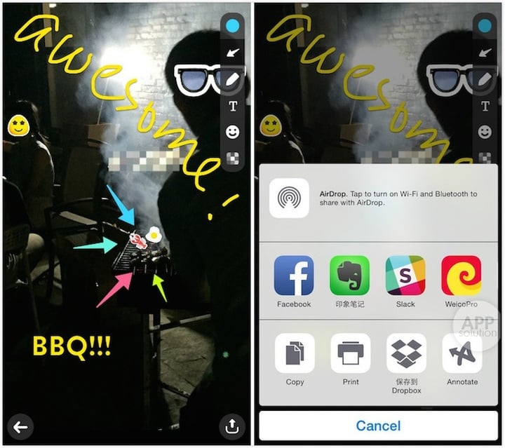 除了粗细可调的箭头,Annotate 用纯手绘替代了固定线框,再加上颜色多选、全图幅打码和表情贴纸,你不但可以用它来做精彩的辅助陈述,还可以发挥创意对图片进行二次创作。