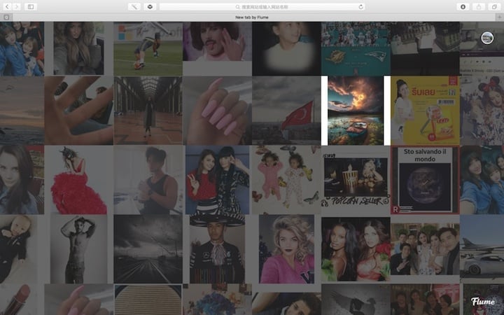 此外 Flume 还提供了 Safari、Chrome 插件,可以将浏览器空白页的背景使用你的 Instagram Feed 图片填充,当然你也可以将 Popular、Profile、Tag 等 Feed 加入到空白页,空白页的图片只能高亮单击看看,不能跳转到图片专页。